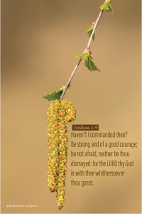 Joshua 1:9 “This is my command—be strong and courageous! Do not be afraid or discouraged. For the LORD your God is with you wherever you go.”